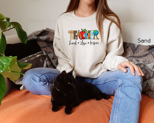 Teach Love Inspire Sweatshirt, Teacher Sweatshirt, Best Teacher Ever Sweatshirt, Teacher Sweatshirt, Teacher's Day Gift, Gift For Her