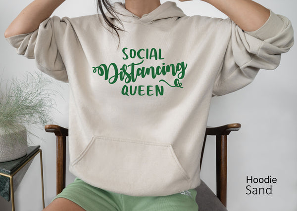 Social Distance Queen White with Black Ringer Sweatshirt, Trendy Funny Graphic Sweatshirt, Introvert Self Quarantine Sweatshirt,C5991