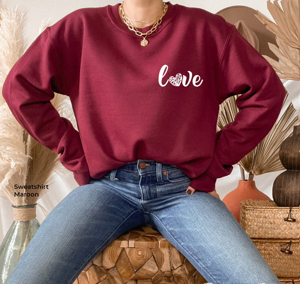 Love Sweatshirt, Love Heart Sweatshirt, Heart Arm Patches, Cute Valentine's Sweater, Teacher Valentine's Shirt, Mom Valentine's,C6167